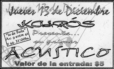 Cristian, Andrés, Mariano, Jairo, Samuel son algunos de los integrantes de "Kairós" la banda de música cristiana la cual podremos disfrutar el día 13 de Diciembre en el restaurante piazza, más conocido como lo de Rola en av 9 entre 42 y 44 a las 21:00 hs. Desde aquí mis mayores bendiciones para ellos
